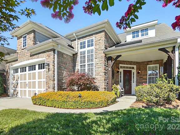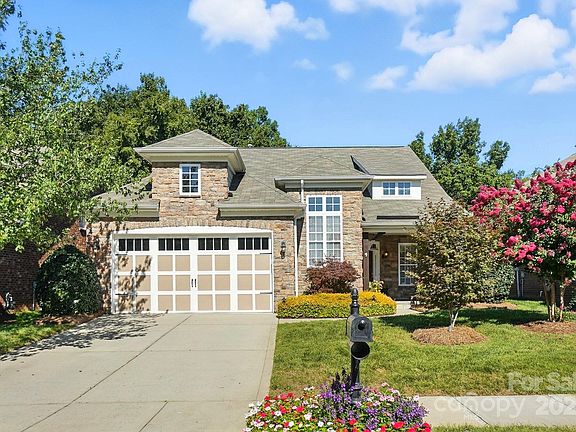 Fabulously upgraded full brick/stone home in the premier Saddlebrook Community of Stone Creek Ranch. Great curb appeal with lush landscaping, a flagstone front patio, and a beautiful leaded-glass entry door. Step inside to a dramatic two-story foyer with hardwood stairs, runner, wrought iron balusters, and lots of hardwoods. Enjoy a formal dining room with tray ceiling, a cozy great room with fireplace, powder room, and a functional laundry/mudroom with storage. The kitchen offers generous workspace and style with Silestone counters, stainless steel appliances, smooth-top range, 42” cabinetry, deep sink, and excellent pantry space. Fantastic owner’s suite (with more hardwoods) includes an updated/remodeled bath with dual vanities plus makeup area, soaking tub, a large frameless-glass walk-in shower, custom tile, and a walk-in closet with organizers. Upstairs, you’ll find a spacious landing with hardwoods, large secondary bedrooms with walk-in closets, a hall bath with double sinks, and exceptional storage. Beautiful 285 sq ft tiled sunroom with ceiling fans plus a travertine patio overlook a fenced, manicured backyard backing to a wooded common area for privacy. Insulated garage door & irrigation. Roof (2020); HVAC and water heater (2022). HOA covers yard maintenance, shrubs & pine straw. Stone Creek Ranch amenities include a clubhouse, pool, and playground, all minutes to I-485 and the shops/dining/entertainment of Stonecrest, Rea Farms, Waverly, and Blakeney. Must see!