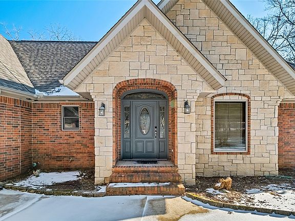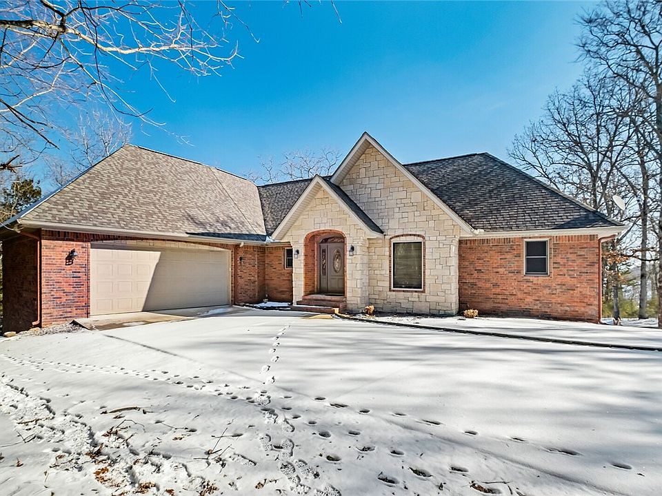 Peaceful, secluded setting, easy walk to the shoreline, and a private dock! Are you ready to enjoy the peace and quiet of natural surroundings and a seasonal view of Beaver Lake? The appeal of this home begins with the brick and masonry exterior and paved parking in front of the two-car garage. Upon entering the home you are welcomed into an open floor plan with the privacy of the primary suite and guest bedrooms on separate sides of the home. The walkout basement has an additional cozy living area that includes a dining table and a wet bar, two bedrooms, a bathroom, and an insulated storage garage for your lake toys. Take a stroll from the patio and backyard down the path to the Corp land to access the private boat dock. Two slips, a swim platform, 2 jet ski lifts, and storage lockers are ready for your lake adventures. Additional features include underground utilities with power to the dock, RV or trailer parking, a fenced back yard, and an additional storage area above the garage.