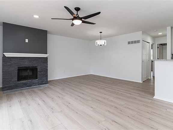 Totally renovated, modern designed, maintenance provided townhouse in highly sought after Quivira Falls. The main level features an open concept floor plan with a custom fireplace in the living room, formal dining room and kitchen with new cabinets, granite counter tops, stainless steel appliances and tile back splash. There are two bedrooms on the main level that have new LVT flooring, new doors, new windows and modern ceiling fans. The bathroom has been upgraded with a marble top vanity, tile floor and easy clean tub surround. The basement has a large recreation room, den or third non-conforming bedroom. The large two car built in garage is super clean and has room for a workshop or storage while still parking two cars. The exterior has a newly stained deck and a concrete patio for those outdoor entertaining events. Check out a the community amenities that includes exterior building maintenance, roof replacement, lawn care, two pools, tennis courts, play area, common areas and a club house.