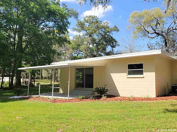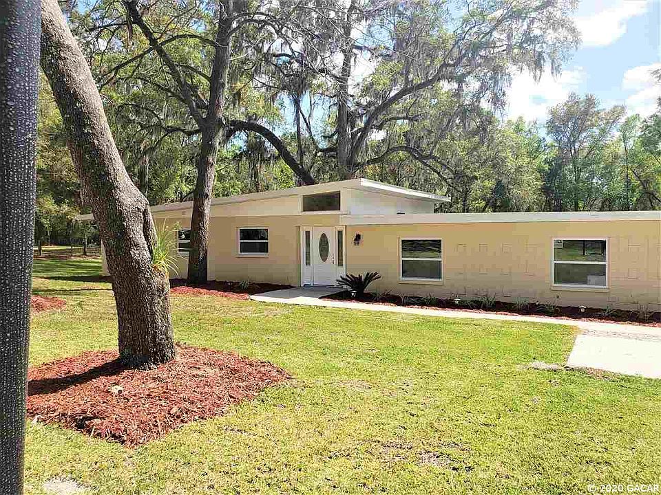 Stunning, Mid-Century Modern home perfectly situated on a fully irrigated, beautifully landscaped one-acre lot in a PRIME location close to UF/Shands & NFRMC & within walking distance to Chiles Elementary & zoned for Buchholz High School! EVERYTHING is NEW including NEW roof, NEW HVAC, NEW luxury baths, NEW luxury tile flooring in living areas and NEW carpet in bedrooms, NEW doors, light fixtures, NEW kitchen featuring SS appliances & marble counter tops, NEW hotwater heater, NEW insulation and NEW paint interior and exterior. This well built concrete block home has plenty of room with separate living room, dining and family room with wood burning fireplace that opens up to a back porch overlooking the huge backyard! Spacious master suite with room for sitting area and luxurious master bath featuring double sinks and a rainfall shower head. The oversized two-car garage has a NEW garage door & opener! CLAY ELECTRIC, (2) septic tanks & a well make for NO WATER BILL & LOW UTILITY BILLS. Recent survey available.