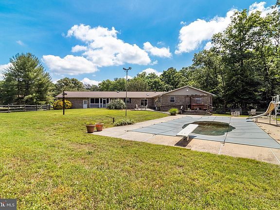 Indulge in the charm of this captivating all-brick sprawling Rambler, nestled on a generous 2.94-acre lot, off a tranquil cul-de-sac. Secluded yet conveniently located near top-notch amenities such as schools, shopping centers, dining venues, parks, and local military bases, this residence offers the perfect blend of privacy and accessibility. Boasting five bedrooms, 2.5 baths, and a dedicated home office, this home is designed to accommodate your every need, ensuring that every room is generously proportioned to facilitate memorable family gatherings. The kitchen shines with newer stainless steel appliances, while the adjacent dining room, featuring a skylight, bathes in natural light, enhancing the ambiance throughout the home. Throughout the years, the homeowners have thoughtfully upgraded the residence with luxurious LVP flooring, a recent AC unit, and a stunning renovation of the owner suite bathroom, complete with heated flooring, a spacious Jacuzzi, and a separate shower. Step outside to discover a screened-in patio perfect for summer barbecues, a fenced backyard embracing an inviting in-ground swimming pool( newer liner), and a secure 12 x 24 shed with electricity for storage needs, all within a private setting that promises peace and serenity. Don't miss the chance to make this remarkable property your own and experience the epitome of comfort and luxury. Come and discover the perfect blend of elegance and practicality in this exceptional home today!