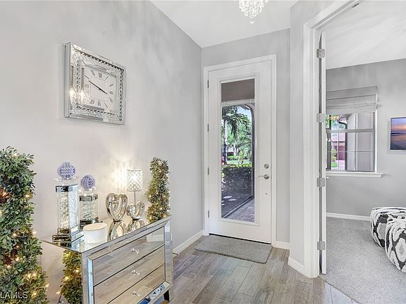 Welcome to this luxurious pool home available for short term rent. 2026 is already booked. Currently available August-October 2025 and May-Dec 2026 for $4000/month. The homeowner has spared no expense when decorating! Beautiful finishes greet you from the moment you enter. With 3 bedrooms, 2 full bathrooms, and an outdoor space complete with pool, hot tub, and water view, you won't ever want to leave. This rental home offers a fully equipped kitchen, primary bedroom with queen sized bed, guest bedroom with queen sized bed, and third bedroom with full sized sleeper sofa. The living room is furnished with a comfortable sofa and extra chairs to accommodate guests who may want to visit during your stay. For those who want outdoor living at its best, you cannot beat the beautiful pool and hot tub area overlooking a stunning water view framed by a picture window pool cage to eliminate any obstructions. The covered lanai offers a break from the sun, a TV for outdoor watching, and small refrigerator so you don't have to go far to grab an ice cold beverage. If you do venture out, the community of Bridgetown has many great amenities to enjoy including resort style pool, lap pool, hot tub, pickle ball, tennis, fitness center, bocce, and plenty of scheduled classes, game nights, and activities. Bridgetown is perfect for those who like to walk, run, or bike ride as it offers many lakes and preserve areas to observe throughout the community. Located close to the airport, i75, grocery stores, restaurants, and shopping, you don't have to go too far to find everything you need. This home is truly the ideal getaway!