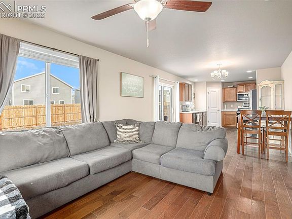 Better than new and available now. Just a couple years young in the highly sought after Lorson Ranch Neighborhood. Three family friendly bedrooms upstairs along with the laundry room. Enter the home in a grand inviting foyer to a large great room including the living room, dining room and kitchen. Dining walks out to the back yard through a large sliding glass door. Half bath on the main level and two full bathrooms on the second floor. The home is very near an almost brand-new school and neighborhood parks. Open and modern floor plan. Minutes' drive from Fort Carson, Peterson AFB and Schriever Space Force Base.