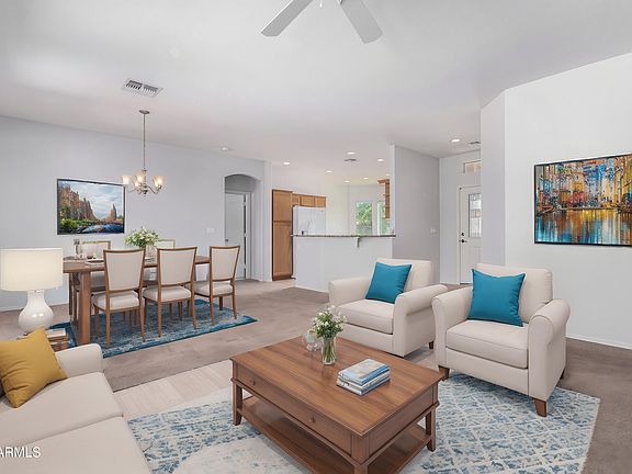 A beautiful 2 bed, 2 bath home in Sunland Springs Village is now for sale! Inside you will find a sizeable dining & living area w/soft carpet and fresh paint throughout. The kitchen is comprised of wood cabinetry w/granite counters, built-in appliances, recessed lighting, and a breakfast nook w/a lovely bay window. Large bedroom, boasting a private ensuite and a walk-in closet for all your belongings. Also including an expansive backyard w/a covered patio where you can spend a relaxing summer evening, this home is a true gem! Enjoy Golf, Billiards, Bingo, Bocce, Fitness Center, Library, Pickleball, Shuffleboard, Swimming Pools, Spa, Tennis, Woodshop &so much more in this popular active adult community.
