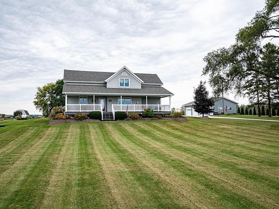 Quality and craftsmanship throughout this wonderful 3BR, 2BA farmhouse style home, re-built from top to bottom, on picturesque 5 acre parcel, with stunning country views. Gorgeous eat-in kitchen with loads of cabinet and counter space, open to living room with gas fireplace and vaulted ceiling. First floor bedroom and full bathroom, plus HUGE main floor laundry/mudroom. Upstairs features a flex space loft area, two more bedrooms and another full bathroom. Large 2.5+ car attached garage PLUS fantastic 3.5 car, heated, detached garage with 220, and additional large garden shed. Don't miss this spectacular property!