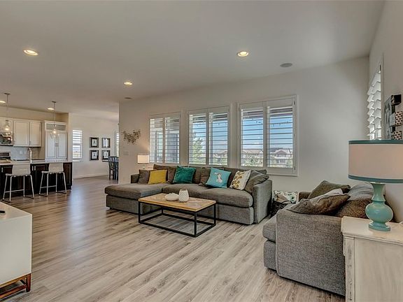 Absolutely STUNNING 2 story home in Stepping Stone. Better than new, 3 bedroom, 3 bath and main floor study, plus a professionally landscaped back yard. You'll love the location (no homes are behind you) and the mountain/sunset views from your backyard are superb. The seller spared no expense when building this home 4 years ago, SO many upgrades including: kitchen cabinets, quartz counter tops, stainless steel appliances, farmhouse sink, hardwood flooring, upgraded carpet and padding, built-in speakers in living room, master and patio, gorgeous light fixtures and tile in bathrooms. Did I mention the stunning plantation shutters throughout the house? The master bathroom has a double vanity, a large walk-in closet and glass barn style doors. The unfinished basement AND crawl space are ready for your finishing touches. Low HOA dues and a community pool/clubhouse are all a part of living at Stepping Stone. Short drive to I-25, new light rail and DTC. It's beautiful Inside and Out...