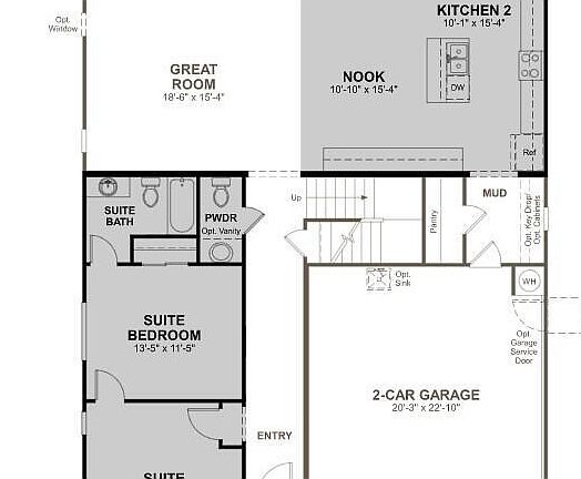 Explore this impressive Ammolite home, ready for quick move-in on a homesite boasting driveway pavers and upgraded front yard landscaping. Included features: 5 full bedrooms and 3.5 bathrooms, an inviting covered entry boasting a stone covered courtyard; a downstairs guest suite boasting a living room, a bedroom and a bathroom in lieu of a flex room and a study; a spacious great room; an alternate kitchen layout offering 42'' cabinets, tile backsplash, granite countertops, stainless-steel appliances, a center island and a walk in pantry adjacent to a roomy nook; an airy loft; convenient upstairs laundry with upper/lower cabinets and sink, plus a large walk in closet; a lavish primary suite showcasing an expansive walk-in closet and a private bath with cultured marble countertops; a covered patio and an 8' 2-car garage with belt drive opener. This home also offers tile flooring in the main areas and bathrooms with carpet in the bedrooms, window coverings, whole house reverse osmosis, pendant light prewiring, two tone paint upgrade, and ceiling fan prewiring in all bedrooms, loft, and patio. Tour today!