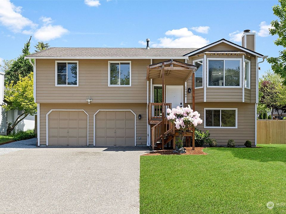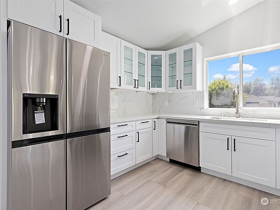 This remodeled corner lot home has it all! The modern and elegant interior boasts an open floor plan, vaulted ceilings, recessed lighting and LED pendant fixtures. The kitchen boasts quartz countertops, stainless steel appliances & luxury vinyl plank flooring that extends throughout the main level. Main level primary bedroom has an en-suite bath plus 2 additional bedrooms & remodeled bath on this level as well. The lower level offers a family/rec room, 3/4 bath, & laundry room, w/slider to the patio/garden. Spacious deck overlooks the large, fully fenced backyard with potential for a detached ADU. Other features include a two-car attached garage, RV parking, gas forced air heat (new 2020) gas HW (new 2023), and all new appliances included!