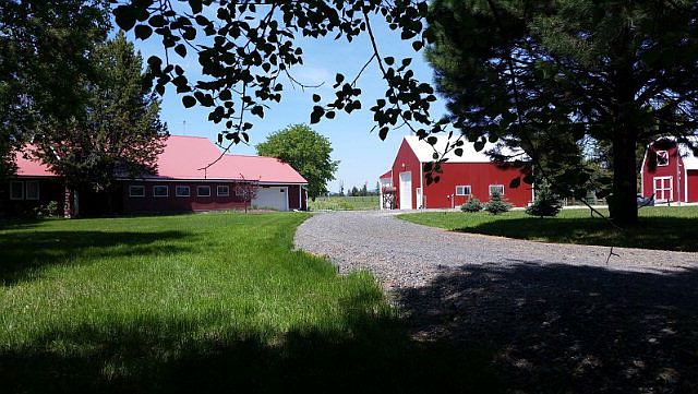 MINI RANCH! Outstanding Property! 13+ acres fenced, cross fenced, 4 separate corrals/breeding pens. Large 40x42 shop with concrete floors a 20x16 shed and a 24x40 hay barn all surrounded by mature trees and a small creek running the full length of the acreage. Wonderful, well maintained 2852sqft. 3 bed 2 bath log home has 2 car attached garage, newer carpet, sunk in living room with a floor to ceiling rock fireplace, pine tongue and grove ceiling between exposed timbers, large master bedroom on the main level; all 3 bedrooms have walk-in closets. Enjoy the two full length covered porches while viewing Snowbank Peak and your well landscaped front yard with shade trees and plenty of room for the whole family to enjoy outdoor activities. Don't miss this great property just 1.5hr from Boise ID