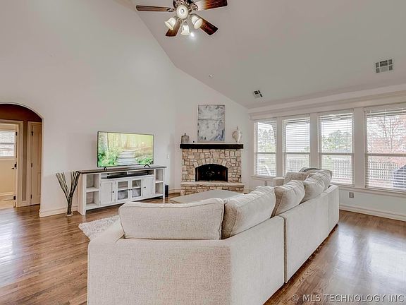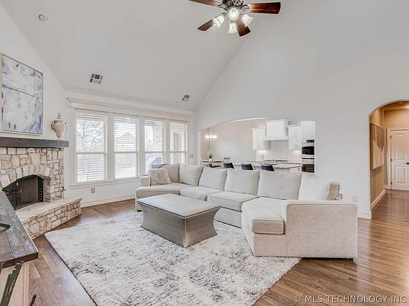 Turn-key beautiful home in desirable Ravens Crossing (Bixby Schools) with one of the largest lots in neighborhood. Chiseled granite, updated colors, newer AC unit up, brand new hardwoods in Master, central vac. Neighborhood pool. 5 bedroom with game and true formal dining. Brand new safe room. Make this one yours!!