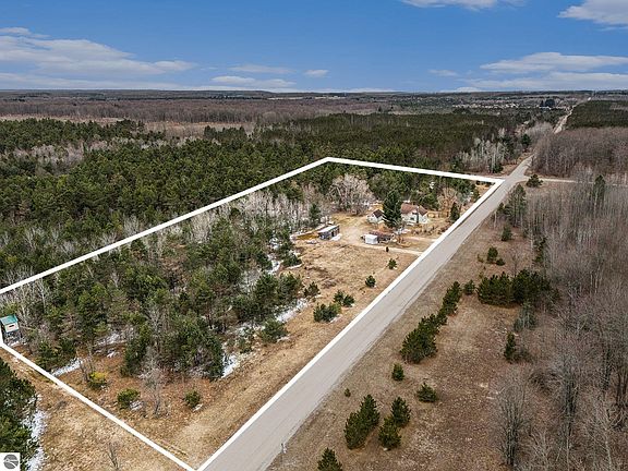 Step into the perfect blend of vintage charm and modern comfort with this delightful 2-bedroom, 2-bath home nestled on 5 peaceful acres that back up to state land. Originally built in the early 1900s, the home received a thoughtful addition in late 2008, including a beautifully updated kitchen, dining area, and laundry room—all while preserving the character and coziness of the original structure. The main floor features a full bath and a warm, inviting living area with a gas fireplace, perfect for chilly Northern Michigan nights. The newer addition is equipped with a gas furnace for extra comfort. Upstairs, you'll find two bedrooms and a convenient half bath. Outside, the property is a dream for hobbyists and homesteaders alike. Multiple outbuildings provide ample storage and unique spaces, including an original "rustic retreat" with 220-amp electrical service, and a separate "hangout hut" complete with electricity and a wood stove—ideal for entertaining or relaxing. Apple and pear trees attract local wildlife, adding to the peaceful, country setting. Whether you're looking for a homestead, weekend getaway, or full-time residence, this property offers endless potential and charm.