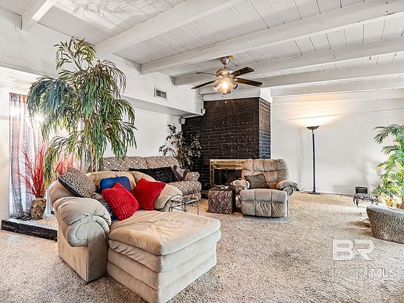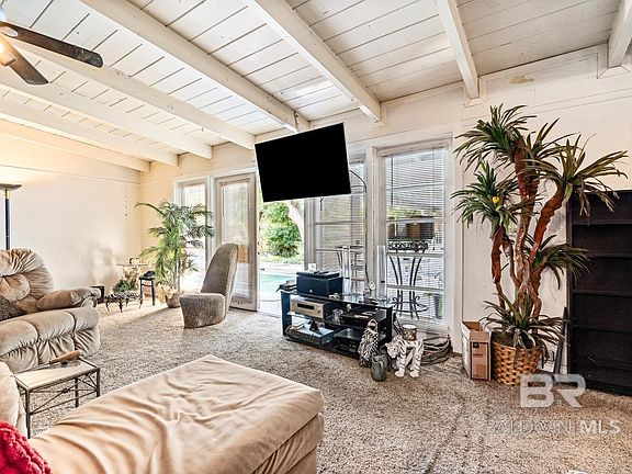 Mid Century Modern renovation project with gunite pool and wooded 0.80 acres! This 3 bedroom / 2 bath property features soaring wood ceilings and nearly every room overlooks the 36 x 16 pool. The house was designed in 1975 around the pool and both of the two bathrooms conveniently open to the pool. A covered porch welcomes you into the dining room and galley-style 11.8" x 7.8" kitchen. The kitchen features a nearly new fridge and electric range with microwave along with stained cabinetry, tile floors, and granite tile style countertops. The entire home is built like a bomb shelter with concrete block covered with wood sheathing and concrete slab throughout. Also the home is built in an L shape and most of the windows feature doors to take advantage of the pool. The 17 x 16.10" living room is a sunken floor style and has a gas fireplace. There is the primary bedroom that features a 25 foot stretch of built in closets ( this was the former hallway). The bathroom has nice black cultured marble vanity area and tub/shower combo. Beyond the primary bedroom is another bedroom the seller uses as an exercise room. On the other side of the home is a 15 x 12 den with windows that open to the covered pool porch, beyond is a super groovy bathroom with sunken shower and vanity areas in original green tile. There is a 14 x 10 bedroom with a 9 x 3.8' walk in closet. Outside at the pool area, original tile leads to the gunite pool. The covered porch lanai is 26.11" x 13.9". The backyard is completely fenced and totally private. There is a 24.5" x 11.8" garage area with laundry area but all of this can be accessed from inside the main house. The garage has a brick floor so this may can be reconfigured to gain more space in the house. The seller uses a metal carport next to the garage to park cars. Home is sold as-is, where-is. All measurements are approximate and not guaranteed, buyer to verify. Buyer to verify all information duri Buyer to verify all information during du