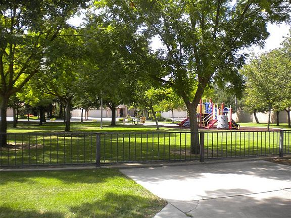 Beautifully updated ranch home on over almost 1/2 acre lot with mature landscaping and lots of concrete. Hardwood floors enhance the kitchen and hallways. Great room, game room,granite kitchen, and dining area have vaulted, beamed ceilings. Iron gates open to the back yard for RV and boat storage. Back yard has a horseshoe pit, fire pit, gazebo, and beautiful inground pool. Entire house has custom window treatments. Extra room is an office (no closet). The front yard has iron fencing separating the home from a public neighborhood park.This terrific home is within walking/biking distance to every major convenience. Long veranda on front of house with small pond.large finished garage.New solar panels keep electric affordable.