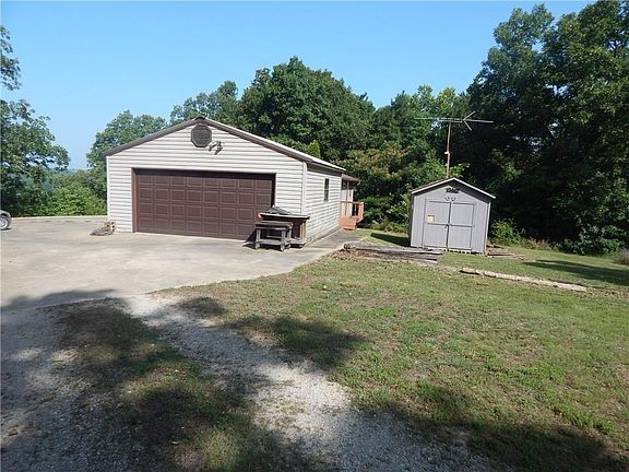 a nice home very private with a great view from the deck, has a nice shop/garage also a storage building. if you need more room could be added on to very easily. the acreage is wooded but could be cleared to make more cleared ground .also lake access to the kings river arm of table rock is just across the road also the county road is in good condition.