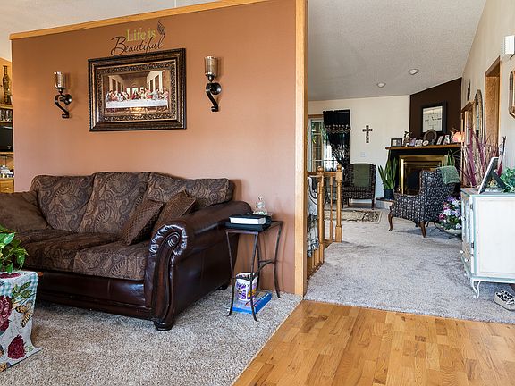 This 4 bedroom 4 bathroom home is unlike any other in the neighborhood! Large master bedroom w/hardwood floors, full master bath and walk-in closet. Kitchen has an abundance of cabinets w/pull out drawers, double oven & mobile island. Sliding patio door off of the dining area for access to the front deck. Family room w/ vaulted ceiling & skylight has gas fireplace and a sliding patio door to a fully enclosed patio and hot tub that is included. Additional bedroom, 2 bathrooms, & laundry finish the main level. New carpet, flooring, and paint throughout the main level. Basement has large family room, 2 bedrooms, bathroom, and storage room converted to a theater room, that can be converted back to storage. Basement is also accessible through the garage. Oversized 3 stall garage w/large shop that is heated and insulated, has utility sink and floor drain. Garage has plenty of storage room for toys. Shelving and multiple outlets on work bench. Yard has mature trees & sprinkler system.