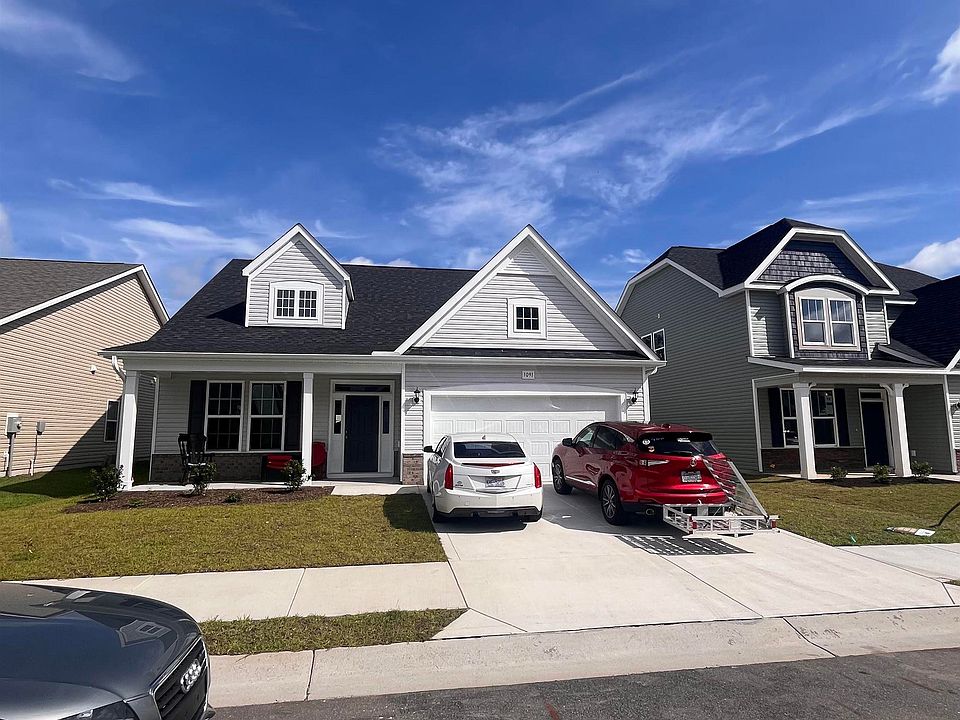 Our newest addition to our home plan line up. The Kent plan has 4 bedrooms, bonus and 2.5 full baths with laundry room. We have added a Covered porch. Our design team has added the following designer features to this home. Laminate flooring in the living areas. Carpet in the bedrooms and bonus room. Upgraded granite to the kitchen. Tile in both bathrooms. Luxury style cabinets with stylish hardware. Comfort height toilets. Full sod and irrigation. 30 architectural shingles. Upgraded baseboards, Too many features to list! Call for more information. Ready to move into NOW! Fantastic location with easy access to 14 gold courses within a 7 mile radius and close to both North and South Carolina beaches, restaurants and shopping! "Photos are of a similar Harmony home. (Home & community information, including pricing, included features, terms, availability and amenities, are subject to change prior to sale at any time without notice or obligation. Square footage's are approximate). Photographs, pictures, colors, features, and sizes are for illustration purposes only and will vary from the homes as built.