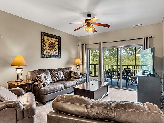 Beautiful, turnkey condo located right on the Fairway of Ledgestone golf course in the premier gated community of Stonebridge, which is nestled in the beautiful Ozarks! This unit would make a great forever home, personal getaway or a great investment as a nightly vacation rental, and you don't have to worry about stairs as it's a walk-in! Bedroom #3 is a lock-out unit and features a separate entrance with a full bath. You and your guests can enjoy great amenities right there at Stonebridge including pools, clubhouse, fitness center, tennis and more. For an extra fee, you can play a round of golf and then enjoy a delicious meal at Ledgestone Grille. When you're ready for some thrills, Silver Dollar City is right down the road. Just a bit further, you'll find Indian Point Marina for loads of Table Rock Lake fun and you're only 10 minutes away from Branson and all the shopping, dining and entertainment you could ask for.