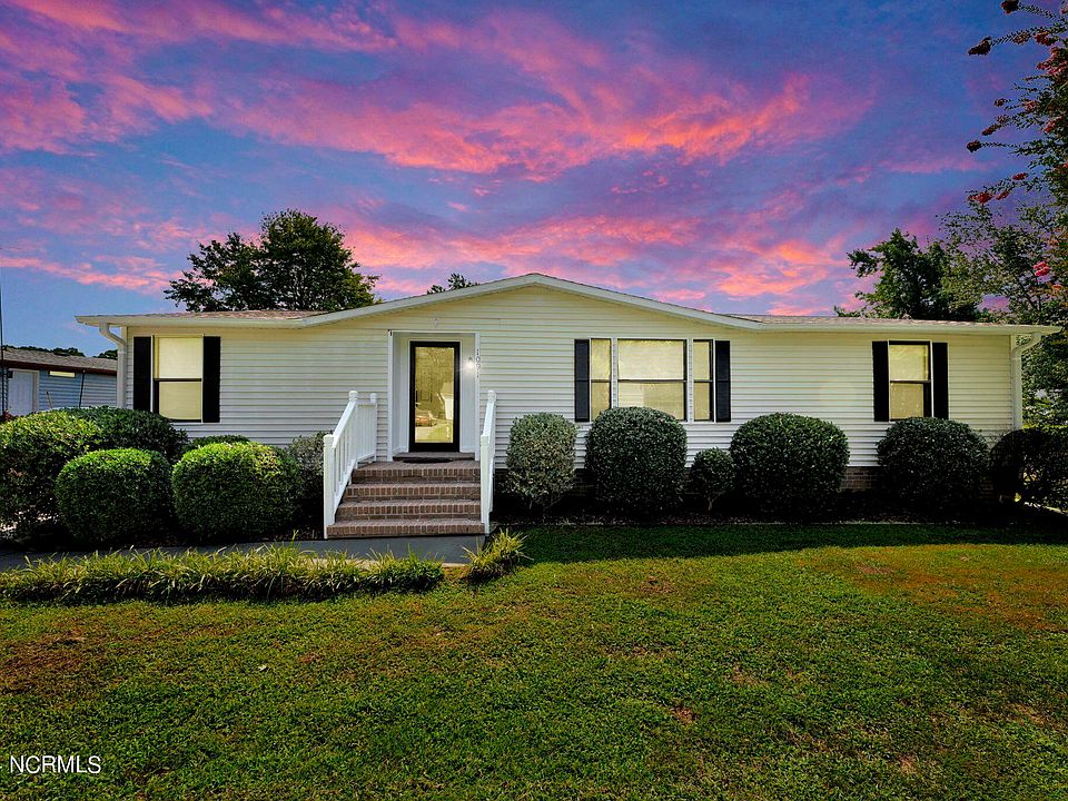 This adorable bungalow in the Village of Calabash is a 3-bedroom, 2-bath home with several appealing features. The interior boasts fresh paint, LVP flooring, new fixtures, built-in bookshelves, and an open floor plan. The spacious bedrooms are complemented by new appliances and a separate laundry room. The kitchen offers plenty of countertops and cabinets, ideal for cooking and entertaining.
