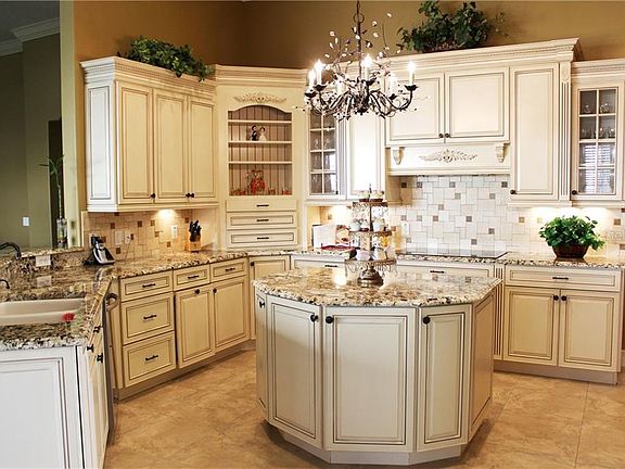 • Interior Features: Ceiling Fans(s), High Ceiling(s), Split Bedroom, Central Vaccum, Crown Molding, Walk-In Closet(s), Open Floorplan, Solid Surface Counters, Solid Wood Cabinets, Eating Space In Kitchen, Kitchen/Family Room Combo, Stone Counters, Tray Ceiling(s), In Wall Pest System, Coffered Ceiling(s), Thermostat