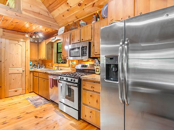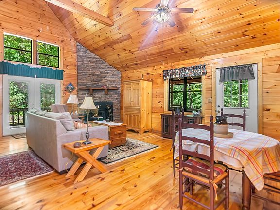 Welcome to your dream retreat nestled in the serene beauty of the mountains, this stunning property offers rustic charm. This cozy home comes furnished, offers 2 bedrooms, and 1 bathroom. The main area features a vaulted ceiling, a cozy stone fireplace, and large windows that flood the space with natural light. The kitchen is well-equipped with stainless steel appliances and open to the living/dining area. The main level bedroom is very spacious with a walk-in closet, and direct access to the yard. The upstairs bedroom/loft overlooks the living room. The home has a large deck, covered porch and firepit area that are perfect for entertaining or simply enjoying the peaceful surroundings. There is a separate one-car garage that has space for storage and parking. This beautiful lot is surrounded by mature trees, offering privacy and tranquility. You are only 11 miles to downtown Blue Ridge where you can enjoy the charming downtown area with its shops, restaurants, and cultural attractions, and only 9 miles from McCaysville where you can enjoy more shops and restaurants. You're just minutes from hiking trails, fishing spots, and scenic drives, making it a perfect location for nature enthusiasts. Experience the best of mountain living in this cozy home. Whether you are looking for a permanent residence, a vacation getaway, or an investment property this home is a must-see. Schedule your private tour today and make this mountain retreat your own!