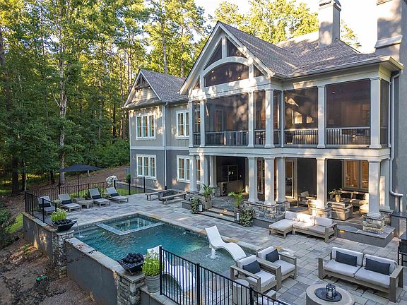 Stunning Custom-Built Home in Reynolds Lake Oconee offering Privacy and lake access. Located at the end of a quiet cul-de-sac in one of Reynolds Lake Oconee’s most desirable neighborhoods, this like-new home offers 5 bedrooms, 5 full bathrooms, and 2 half baths—all thoughtfully designed for comfort, style, and entertaining. Built in 2021, this elegant residence features soaring cathedral ceilings, natural hardwood floors, three fireplaces, and plantation shutters throughout. The open-concept main level includes a spacious great room, a gourmet kitchen with Cambria quartz countertops, top-of-the-line stainless steel appliances, a gas range, double ovens, and a large island perfect for gathering. The split floor plan features two bedrooms on the main level, offering privacy and convenience. Enjoy seamless indoor-outdoor living with a screened-in porch featuring Trex decking, a gas-assisted wood-burning fireplace, and an outdoor dining space. The terrace level includes a full bar, two additional bedrooms, and a large recreation room ideal for entertaining. This floor plan is ideal for any family. Step outside to your private backyard oasis with a heated pool, spa, summer kitchen, and outdoor fireplace—all overlooking peaceful views of Lake Oconee. Owners have secured approval to create a private path to the nearby community gazebo and dock, offering easy lake access. The property borders over 18 acres of protected conservation land, ensuring lasting privacy and natural beauty. A Reynolds golf membership is available, giving access to seven championship courses, club dining, and world-class amenities. Optional: Sellers are open to selling fully furnished for a true turn-key experience.