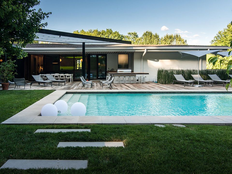 California ranch marvel in sought after well established neighborhood. Equal parts entertainer's wonderland and family retreat, featuring an exquisite pool area, chef's kitchen, to-die-for owner's suite, and flex space in spades. The 1.86-acre corner lot spans a hillside, combining treetop views with a level floor plan. Renovated in 2007 w/ new addition in 2012. Lofty ceilings and walls of windows everywhere. Painstaking attention to quality, livability, and maintainability.