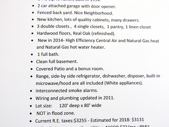Ready for you to move right in... There is over 1400 sq. ft. in this 3 bedroom, 1 bath home. Includes updated kitchen with lots of cabinets, appliances stay... Beautiful refinished oak hardwood floors in living, dining and bedrooms. Covered patio and fenced yard is perfect for entertaining. Large bonus room off of kitchen opens to back yard. Full unfinished basement and two car attached garage. Updated electrical, plumbing and HVAC system within the past few years. Walking distance to shopping, banking and restaurants. Property is a SHORT SALE.