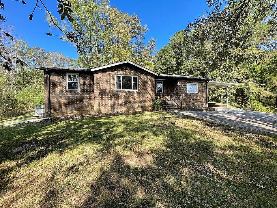 Remodeled 3 bed 2 full bath full brick home with open, split bedroom floorplan, new light fixtures, ceiling fans, toilets, vanities, counters, countertops, backsplash, sink, faucets, cabinets, flooring, and paint. Metal roof, carport. 1.2 acres, Zoned Locust Fork schools.