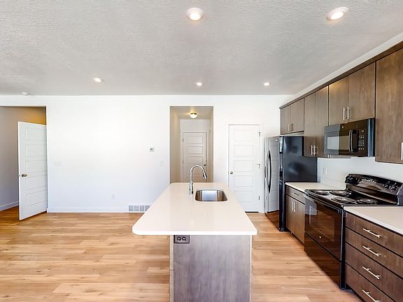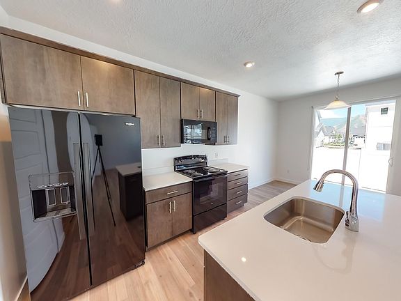 Call or Text for showings and applications. New Modern Mapleton town home offers 9ft ceilings with 1600 sq.ft living space with unfinished basement. 3 bedroom, 2- 1/2 bath with a 2 car garage. Quartz countertops, black appliances, upgraded flat panel Maple cabinets creating a very modern feel. Lots of natural light from large windows with roller shade window coverings. Master bath with double sinks and euro shower door including a large walk-in closet, recessed lighting throughout, upgraded laminate flooring on main level, upgraded carpet, laundry upstairs by bedrooms, high efficiency furnace. Incredible location near Maple Mountain high School, walking distance to Maple Ridge Elementary. Private fenced backyard with patio. Renter responsible for all utilities. Owner pays HOA . NO SMOKING, NO PETS