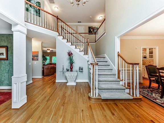 - Interior: 10 ft+ Ceil Main, 2-Story Foyer, Entrance Foyer, Trey Ceilings, Wall/Wall Carpet, Bookcases