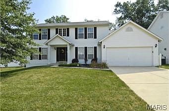 PRICED TO SELL!!! Fantastic 4 Bdr / 2.5 Bath home in the desirable Country Crossing neighborhood. This home is nestled on a quiet setting and has a private back yard w/oversized patio backing to landscape beds and mature trees. Features inc: Two story foyer w/ceramic tile that runs through the Kit/PR/Laundry Rm, spacious Kitchen & Bkfst Rm with an island w/Bkfst Bar, an atrium door from the Bkfst Rm to the patio, vaulted ceiling in Mstr Bed & Bath, garden tub and separate shower, double bowl vanity in Mstr Bath, double door entry to the Master Bdr, ceramic tile in guest and Mstr Baths, walk in closets, two panel white doors &trim, newer carpet throughout the home and more. The rooms are large, spacious and the home has been very well maintained. Low maintenance exterior has vinyl siding and a full glass front storm door. This is a great home at an excellent price in this neighborhood, located just minutes from the shopping, restaurants and services on Mid Rivers Mall Dr.
