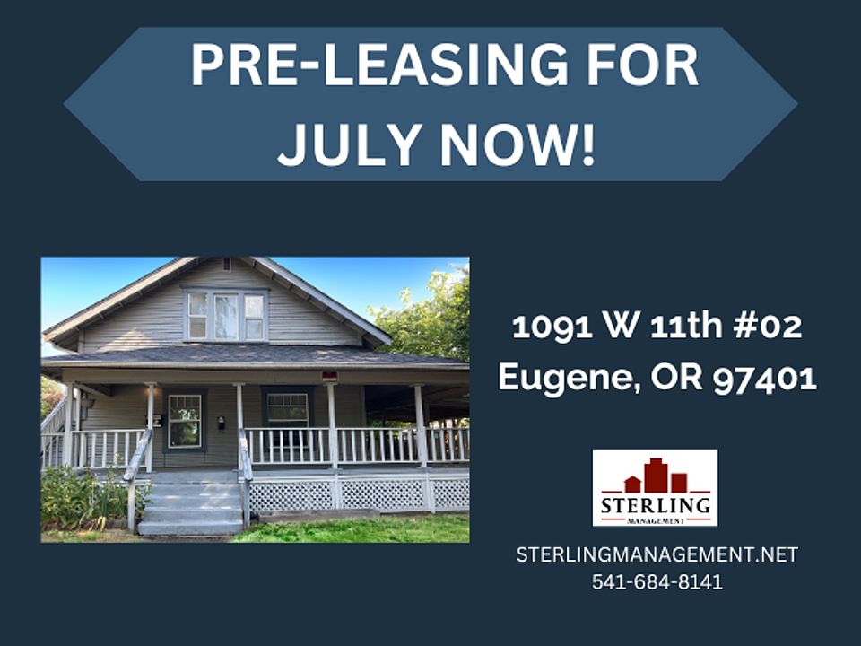 You're going to love this delightful 2-bedroom, 1-bathroom apartment set in a lovely historical home! It features a charming vintage stove that adds character to the space. You'll find beautiful original wood flooring in the living and dining areas, while the kitchen and bathroom have practical laminate flooring, and cozy carpeting in the bedrooms. The bathroom is conveniently accessible through the master bedroom, but it also has a separate entrance for guests. With onsite laundry makes chores a breeze. And if you're a pet owner, you're in luck! We welcome furry friends here with some references, a $400 deposit, and a monthly pet rent of just $25. Updated Photos to come! Open Enrollment 12/17/2024 @ 02:20 pm Sterling Management Group 977 Willagillespie Rd Eugene OR 97401