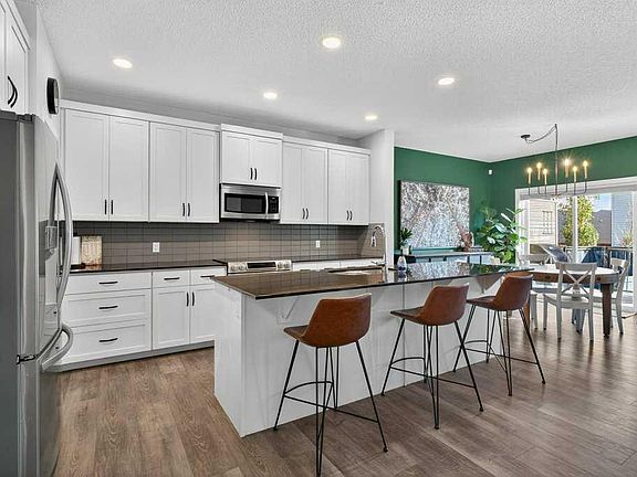 We are thrilled to present a truly exceptional property in New Brighton, one of Calgary's most sought-after neighborhoods. This five-bedroom, Cardel-built home offers over 3,000 square feet of developed space and is designed to impress. From the moment you step inside, you'll be greeted by open and airy nine-foot ceilings and luxurious upgrades throughout. Updated vinyl plank flooring guides you past the tandem triple garage and mudroom into the spacious main living area. A stylish barn door provides privacy for the main floor office, perfect for those who work from home. The modern kitchen is a chef's delight, featuring an extended island, a walk-in pantry, and updated appliances. Adjacent to the kitchen is a generous dining area that opens onto a large composite deck, ideal for outdoor entertaining. The expansive family room, complete with a custom fireplace, ensures cozy gatherings during cooler seasons. The living space extends outdoors with a sunny, east-facing yard, newly decked to enhance your summer evenings. Exterior upgrades include a fenced dog run, a firepit gas line, and Gemstone lighting. Upstairs, a huge bonus room provides the perfect space for sports enthusiasts or movie buffs. The upper level also features convenient laundry facilities, three bedrooms, and two full bathrooms. The enormous primary suite boasts a walk-in closet and a separate shower and tub, bathed in natural light. For your comfort, the entire home is fully air-conditioned. The fully developed basement offers an additional two bedrooms and a generously sized bathroom, perfect for teenagers, guests, in-laws, or multi-generational families. There's also a closed-off craft room, currently used as an artist's studio, ready for your own vision. SOLAR PANELS are a huge bonus and are sold contract free. This is truly one of the most desirable homes in the area, complete with a rare triple tandem garage. New Brighton offers an abundance of amenities, including walking paths, skate park, shopping centers, restaurants, schools, and water parks. Don't miss the opportunity to make this incredible home yours.