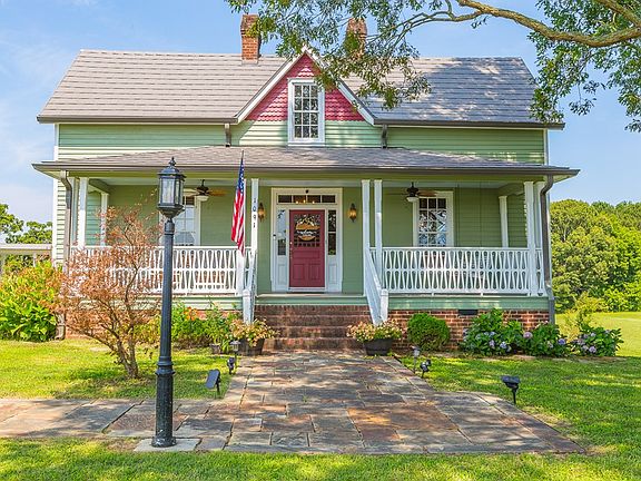 Every home has a story, but none quite like this! Originally built in the 1800s, this home was relocated to this 2.39 acres w/ an astonishing front porch mountain view! This 5BD/4BA home was beautifully restored & features a large master suite addition on the main floor w/ double closets, tiled shower & large soaking tub. The kitchen features an island & see thru fireplace to large open dining room w/ view of living room. There is one additional bedroom on the main & 3 bedrooms upstairs. The basement is finished w/ a kitchen, living room, full bath & more! It has walk out access to the back yard. Among all the history of this home you will find a root cellar for storing vegetables, an old safe from the Eton bank, & a hidden safe room w/ secret passage behind the bookcases.