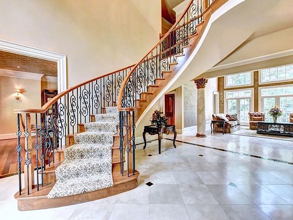 Gorgeous, sprawling, custom Johns Creek estate on 2.5+/- priv acres. Stone drive leads up to double castle doors. Off the foyer, a grand, floating staircase and fireside study with custom accents. Oversized great room leads to huge entertaining deck. Kitchen features top of the line appls, custom cabinetry, brkfast area with built-in bench and separate patio. Master on main with two sitting areas, master bath with double closets and clothes steamer. Bsmt w/lrg in-law suite, 2 fireside living areas, and theater. Oversized upstairs BRs. Gorgeous pool and spa in the back.