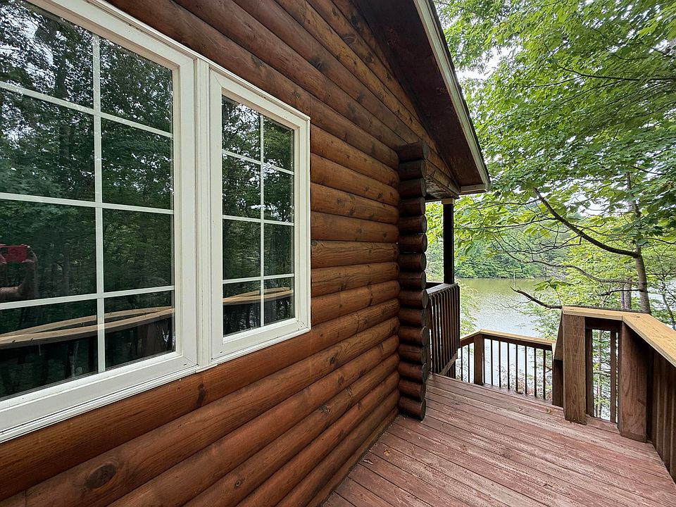Beautiful log Lakefront Home on Wood Creek Lake in London KY. Completely remodeled with fully finished walk-out basement. Contractor will clean all tools once finished. Private dock permit, covered decks overlooking lake. Beautiful hardwood flooring and tile on main level. Lots of natural light with multiple doors overlooking lake. Primary Bedroom is on main level with deck access, has full bath with walk in shower. Main level has kitchen, dining and Family Room, 3 bedrooms and 2 full baths. Fully finished basement offers kitchen, great room and a large bedroom with walk-in closet. Huge decks and on both levels. This one is priced to sell. Sold as is. Buyer to verify all information. Inspections are welcome.