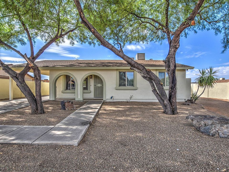 Opportunity is knocking! Come see this 3 bedroom, 2 bath home on a spacious corner lot in Peoria, conveniently located just minutes from the 101 freeway! Popular floorplan features a bright, open kitchen with Corian counters, gas range, brand new built-in microwave and tons of storage! French doors lead to the 14' X 22' covered patio w/ceiling fans. The large grassy backyard comes with an automatic watering system, removable wrought iron dividing fence and side yard w/RV gate and large utility shed complete with its own electrical sub-panel. The entire home has just been repainted, inside and out. New digital programmable thermostat and new doorbell chime. Dual pane windows and ceiling fans throughout! This home won't last long!