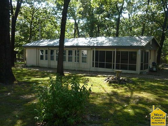 A nice weekend getaway or a full time home in Fox Run subdivision, a 2 bedroom with a large screened porch, a newer metal roof on the home. Forced air heat & central air, also a 2 car car-port with metal sides, and electricity. The shared well was recently replaced. The circle drive allows easy access to the home with your boat. Also easy access to Truman Lake , with a ramp within walking distance of the subdivision for some of the best crappie fishing on Truman Lake. . A Large screened porch, with lots of shade trees make this a great home to enjoy the Lake and friends. All furnishings stay with the home.