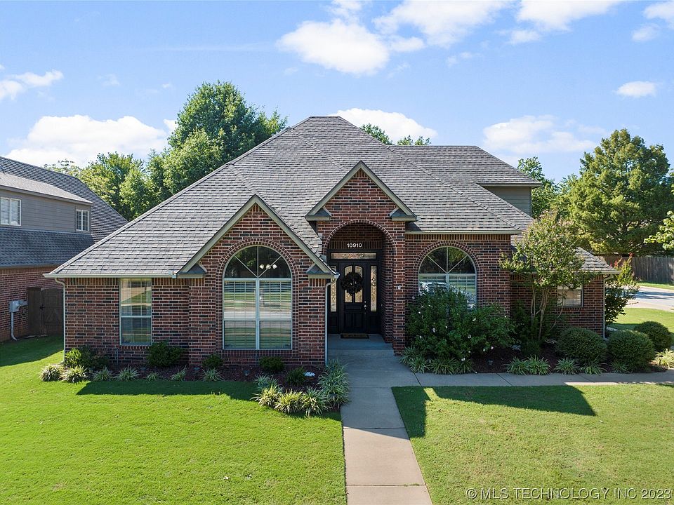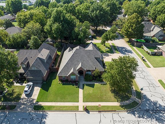Welcome to this exceptional full-brick home situated on a generously sized corner lot in the highly sought-after Bixby school district. Nestled within a desirable neighborhood, this residence combines timeless elegance with modern comfort. Step inside and be greeted by the grandeur of high ceilings, creating an open and inviting ambiance throughout. Abundant natural light streams in through large windows, illuminating the spacious living spaces. This exceptional property boasts two inviting bedrooms on the main floor, complemented by a dedicated office and elegant formal dining room, creating the perfect space for hosting gatherings and enjoying day-to-day living. For outdoor enthusiasts, the neighborhood pool is just a stone's throw away, offering endless opportunities for relaxation and summertime fun. This property truly represents the perfect blend of location, style, and practicality. Don't miss out on the opportunity to make it yours. Seller offering $1,000 paint allowance to update to the colors of your choice!