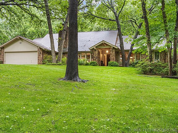 INCREDIBLE OPPORTUNITY TO OWN 5 ACRES IN SOUTH TULSA! This gorgeous lot and well-maintained home provide an ideal canvas for your dream home on acreage near all of your favorite South Tulsa conveniences. Lush green grass under a canopy of mature trees; gunite diving pool & expansive deck ready for entertaining. Great room, study, dining, eat-in kitchen, primary suite and second bedroom on the main floor; two beds, game & full bath up.Spacious bedrooms. Most Sprinklers tied to well water. Jenks SE schools!
