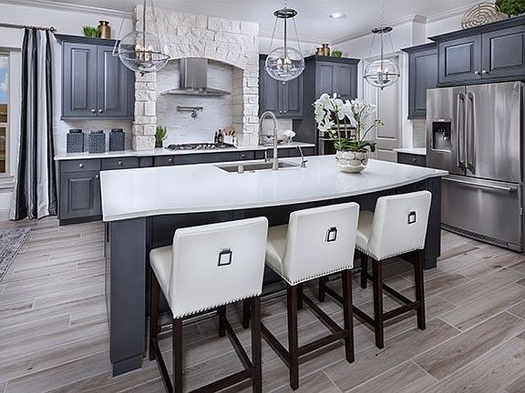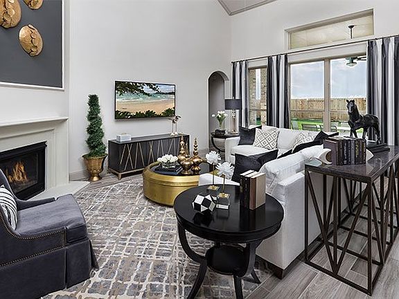 The spacious six-bedroom Picardy II Next Gen® plan by Village Builders features a unique dual living arrangement. A Home Within A Home®, the private suite offers a separate and private front entry, living room, bedroom, full bath, and kitchenette. The main home boasts an inviting front porch and foyer entry, island kitchen with walk-in pantry, dining room, spacious family room with corner fireplace, walk-in mud room and utility room, and a three-car garage. The master bedroom features an en suite bathroom with dual sinks, separate shower and corner tub, private toilet enclosure, and a grand walk-in closet. The first floor also offers a second full bedroom and bathroom. The second floor features three additional bedrooms, a game room, and the option to add a media room. The Picardy II also features the options to add an outdoor grilling area, and an extended covered rear patio.
