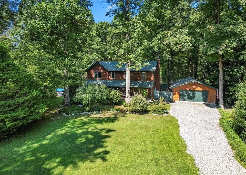 Come see this hidden gem that checks all the boxes! Step inside & be charmed by this 3 bedroom, 2.5 bath home w/pool, 2 car detached garage all nestled on retreat like 2 acres! Large living room w/tons of natural light that connects the formal dining room w/beautiful hardwood floors! Updated kitchen w/an abundance of cabinetry for storage, breakfast bar, & all appliances stay! Family room offers additional entertaining space w/wood burning fireplace! All 3 bedrooms are located upstairs, complete w/a master, en-suite & vaulted ceilings w/balcony- perfect to make your own private getaway at home! Enjoy your evenings relaxing around your firepit in your private, secluded backyard w/chicken coop & barn! Just minutes away from Cataract Lake!