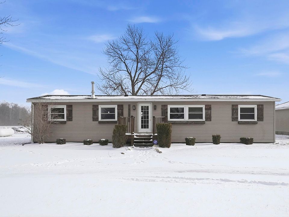 Peaceful country living with space and versatility. This well-maintained single-story home features an open layout, and a bright, neutral interior. The kitchen offers ample cabinetry and a breakfast bar open to the main living area. Multiple outbuildings provide excellent flexibility, including a large arched metal building with concrete floors and high ceilings—ideal for storage & hobbies. A rare opportunity for privacy and functionality in a quiet rural setting. The 60'x40' building is heated; 23'x16' is heated and cooled.
