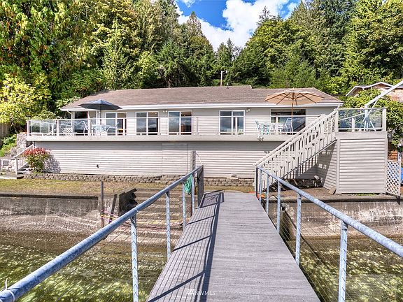 Sit back and take in the breathtaking views & fresh ocean air! 2 parcels- 1st w/ house + garage on waterfront lot & detached 900 sf garage + add. parking for up to 12+ cars. 2nd parcel is vacant land that holds the drainfield. Home features 3 beds, 1.5 bath. Entertainers' open kitchen w/ room for everyone to mingle both inside & out. 5 sliding doors leading out to huge deck allow you to take full advantage of the views overlooking the canal. Relax in the adjacent light filled family room w/ soaring ceilings, timber frame beams & wood burning fireplace. 95'+/- of low bank bulk headed waterfront. *RARE 150' sun soaked dock w/ deep water moorage even @ low tide. Head down to the waterfront with a cold drink, cast your fishing pole & relax.