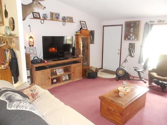Wonderful small acreage set-up for horses/livestock. This 5 acre parcel would be great for 4-H or FFA family.Property adjoins BLM and is on a dead-end road. Has cute well kept double manuf. home with 3 Bedrooms could be 4, 2 Baths. Xtra 4th Bedroom/den and nice big deck in front and small entry deck in back. Home lives bigger than its sq footage. Small open front shop. Huge arena and 3 stall Horse Barn. Has Hay storage, concrete floor and well built stalls. Made for ease in handling animals.
