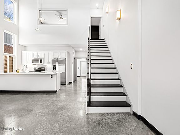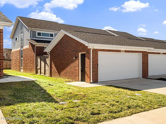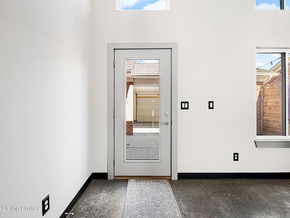 Discover contemporary living in this sleek and stylish townhome, just two years young and designed with the modern professional or student in mind. The open-concept layout exudes sophistication, beginning with a spacious two-car garage that not only provides secure parking but also features an open rear wall for effortless access to the private courtyard and direct entry into the home. Step inside to a light drenched great room, where soaring ceilings and a minimalist design create an inviting atmosphere. The polished concrete floors offer a seamless flow throughout the first floor, perfectly complementing the modern aesthetic. This space is ideal for entertaining, with the great room extending into a gourmet kitchen. Here, you'll find an expansive peninsula island with breakfast bar, white shaker cabinetry, a timeless subway tile backsplash, white quartz countertops, and stainless steel appliances, all contributing to the kitchen's sleek and polished look. Flexibility is key in this townhome, with your choice of a primary bedroom on either the first or second floor. The first-floor bedroom boasts direct access to the backyard, as well as a full bath featuring a double vanity and walk-in shower. Upstairs, a large loft-style bedroom awaits, complete with a unique window overlooking the living are below, which can be closed for privacy. This upper-level retreat also includes a private en suite bath and access to attic storage. Outdoor living is a pleasure in the completely private courtyard patio, nestled between the garage and the home's entrance, perfect for morning coffee or evening relaxation. Conveniently located near the parks and many retail, dining and entertainment attractions in downtown Jeffersontown.