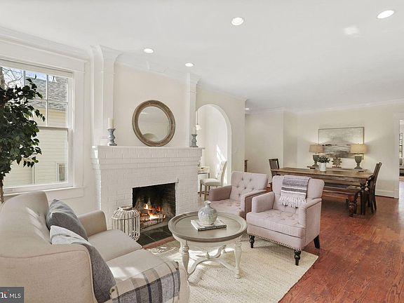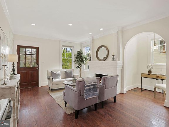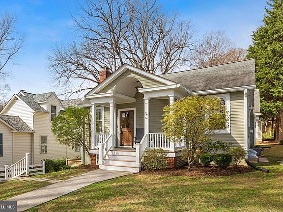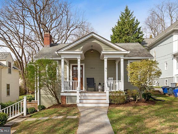 Enjoy the peace and serenity of small-town life with close proximity to all urban amenities in this expanded Garrett Park bungalow with updates and vintage charm throughout. An inviting front porch, flagstone walkway and cobblestone driveway reflect the warmth and character of the village-like surroundings. Towering trees shade the home from summer sun. Nestled on a winding street of small bungalows and grand Victorians, this neighborhood gem offers a deceptively spacious interior with 4 bedrooms, 3 full baths, a wonderful first-floor family room, and finished lower level. The front entry leads to a large living and dining room combination with brick fireplace, two alcoves for desks or sitting areas, and large windows filling the room with light. Beyond the living and dining room is an updated kitchen with honey-colored wood cabinets and stainless appliances open to an expansive, sun-drenched family room with four floor-to-ceiling windows. A door from the family room leads to the flagstone patio and deep backyard. Three large bedrooms on this level include a master with its own bath and walk-in closet. The hall bath features a round vintage sink with marble countertop. There are dark, rich hardwoods and recessed lights throughout this level. Stairs from the family room lead down to the daylight lower level with a bedroom, full bath with shower, and three additional finished rooms with unlimited possibilities for work, play or relaxation. Set up your Peloton in one, office or playroom in another, and enjoy another as a family or movie room. There is an outside exit to the side yard on this level. A large laundry room offers additional space for storage. Nearby are the Marc Train and the town post office, and you're just minutes from downtown Bethesda and the shops and restaurants of Rockville's Pike & Rose. This summer, enjoy a pre-theater dinner at Garrett Park's popular Black Market Bistro followed by a concert at the Strathmore Music Center. Work, play, live, grow. It all awaits you here. Welcome home!