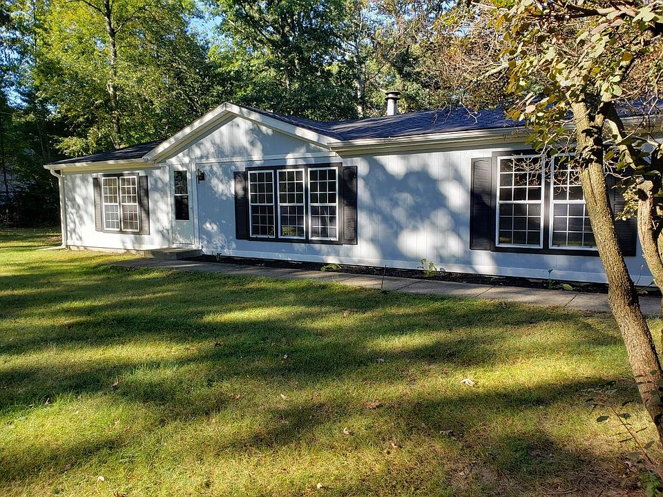 Ready to move into!! Ranch with 3 bedrooms, 2 bathrooms, split floor plan!! Fresh paint through out, including the exterior cedar siding! Fireplace in the living room, large kitchen with NEW dishwasher, microwave, and counter tops. Plenty of cabinets so bring it ALL! Both bath rooms have been completly redone, from floors to ceiling! ALL New light fixtures. NEW air conditioner!!Laundry room is ready for your washer/dryer, NEW roof, New flooring thru out! NEW sliding door off the dining room leads to the NEW deck for those lovely sunsets! Extra large garage for all your toys! Access the crawl space from the outside .OHHH bring the kids or grand kids because the backyard is sooo big you can have football, baseball or Go ahead and install a pool for them! Easy access to I 65 at the 230 Exit for your easy commute.Must see before it gets away from YOU! Immediate possession, before the snow falls!