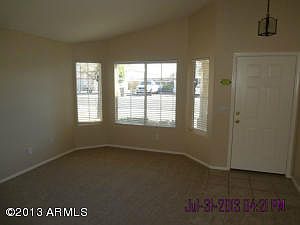 Fantastic opportunity to own this lovely 4 bedroom 2 bath home in Country Meadows. Home features FRESH designer two-tone paint, brand NEW carpet, neutral tile flooring, vaulted ceilings and ceiling fans throughout. Formal living in front room with bay windows. Kitchen opens to great room with family/dining room combo. Kitchen has white appliances, oak cabinets, a pantry and breakfast bar. Master suite has full bath and walk-in closet. 2'' blinds throughout. Backyard has patio and large grassy area. Near shopping, dining, schools and the Cardinals Stadium with easy access to Loop 101. *Special financing offered; Purchase for as little as 3% down without Mortgage Insurance