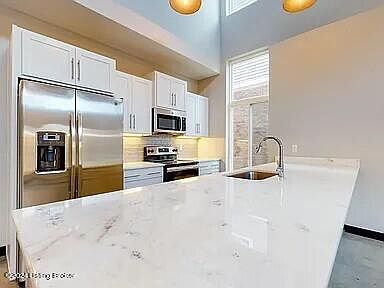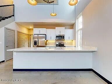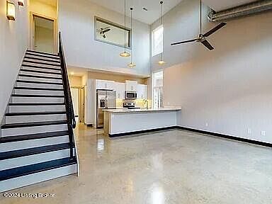 Discover a charming contemporary loft-style condominium. This *NEW CONSTRUCTION* unit offers an array of amenities: beautifully polished concrete floors, a massive quartz island counter complemented by stainless steel appliances, a two-car garage, and a private patio. Plus, enjoy the convenience of the laundry area conveniently located off the kitchen. The townhome's serene atmosphere is accentuated by its modern white and grey color palette. The high ceilings and ample windows flood the sitting area with natural light. There are full bedrooms and baths on each floor providing ample space. Please note: Pictures are not actual photos and are for reference only.